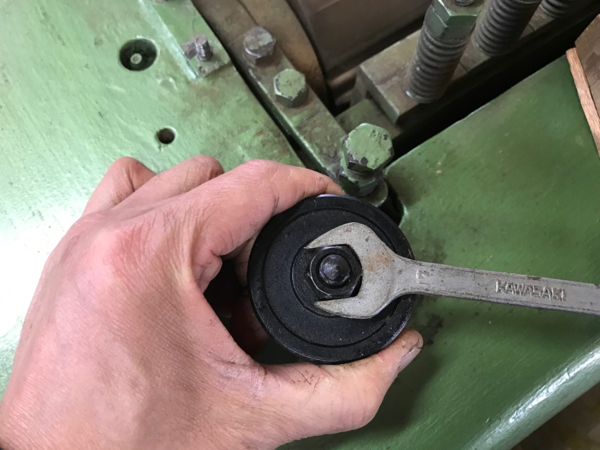 刃に当たったら上のネジを緩めローラーを下げていきます。