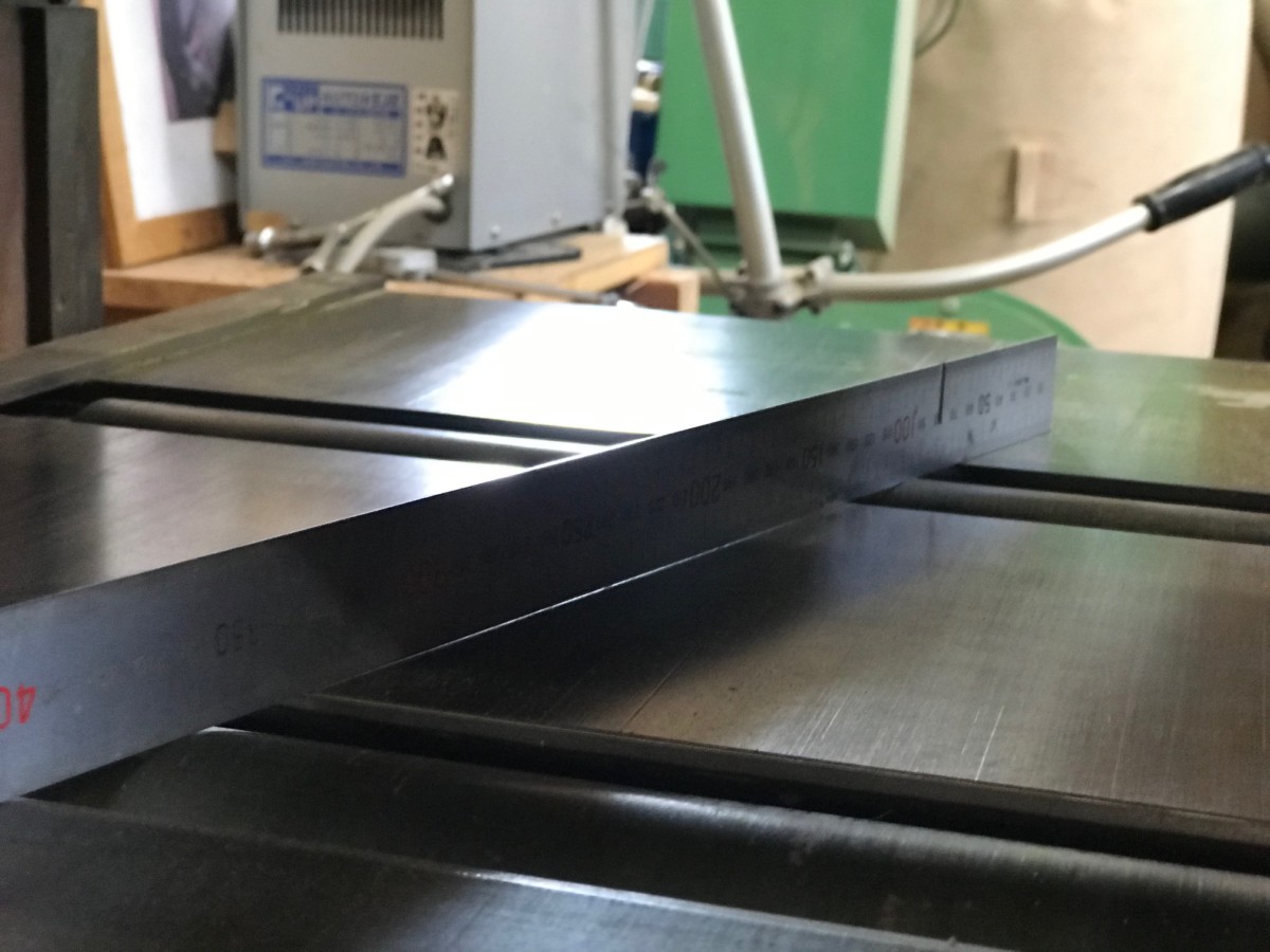 本当はシックスネスゲージを使って隙間を見るのですが、持っていないので金尺を当てて光を透かして確認しました。