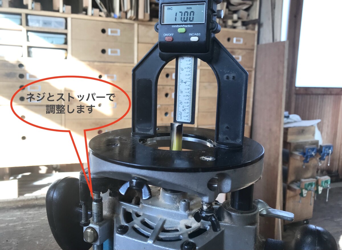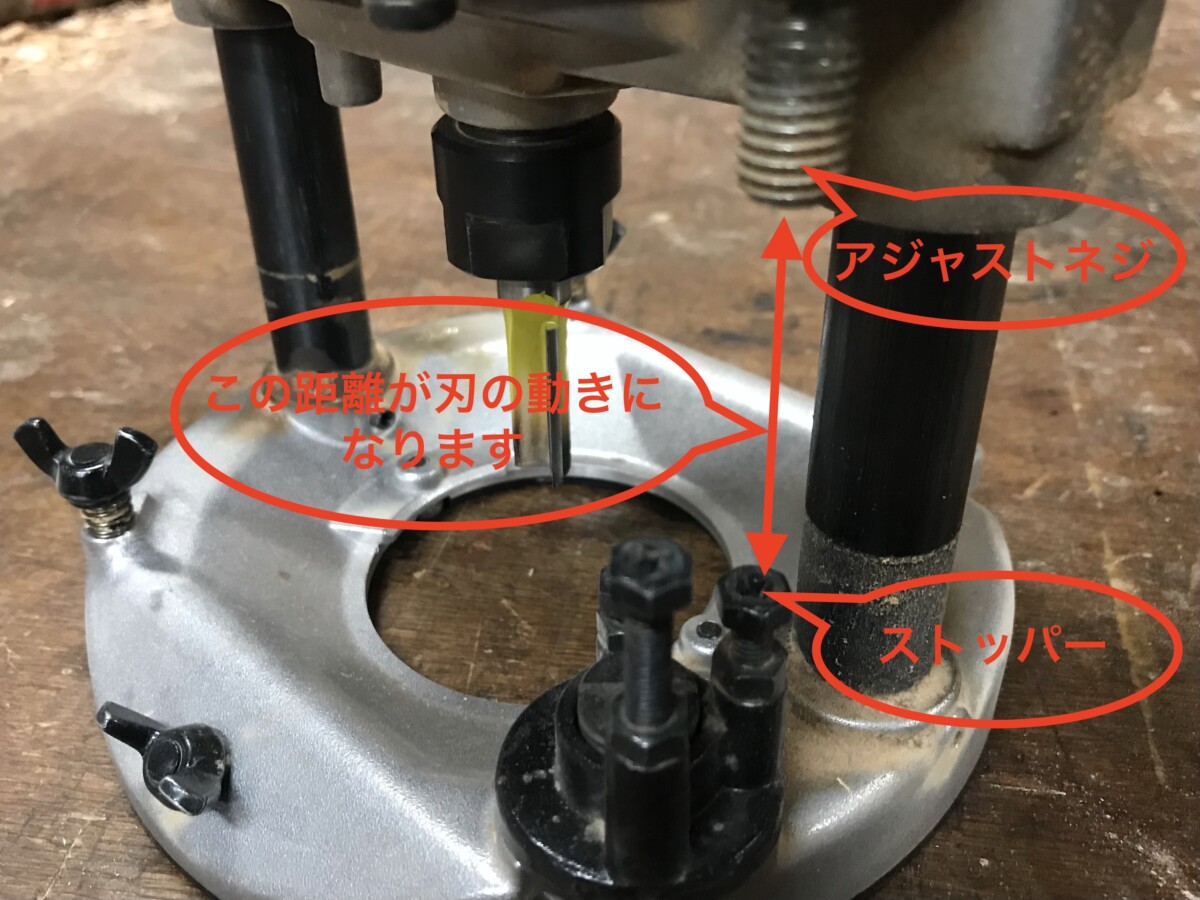 アジャスターとストッパーの距離で切削の深さが決まります。