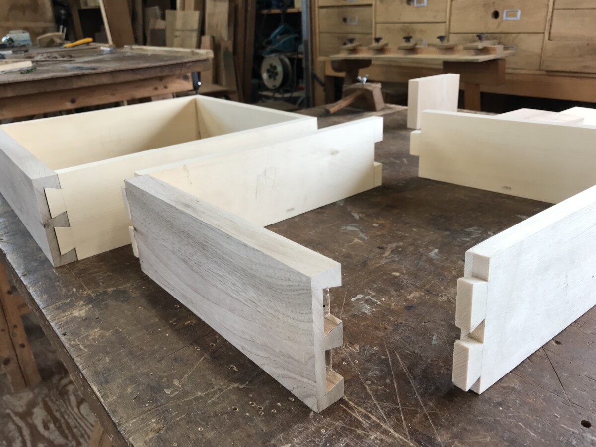 木工の組手の技法の中に蟻組という加工方法があります。蟻組の中でも通し蟻組継や隠し蟻組継など様ざまな方法がありますが、その中の包み蟻組継という方法を紹介したいと思います。