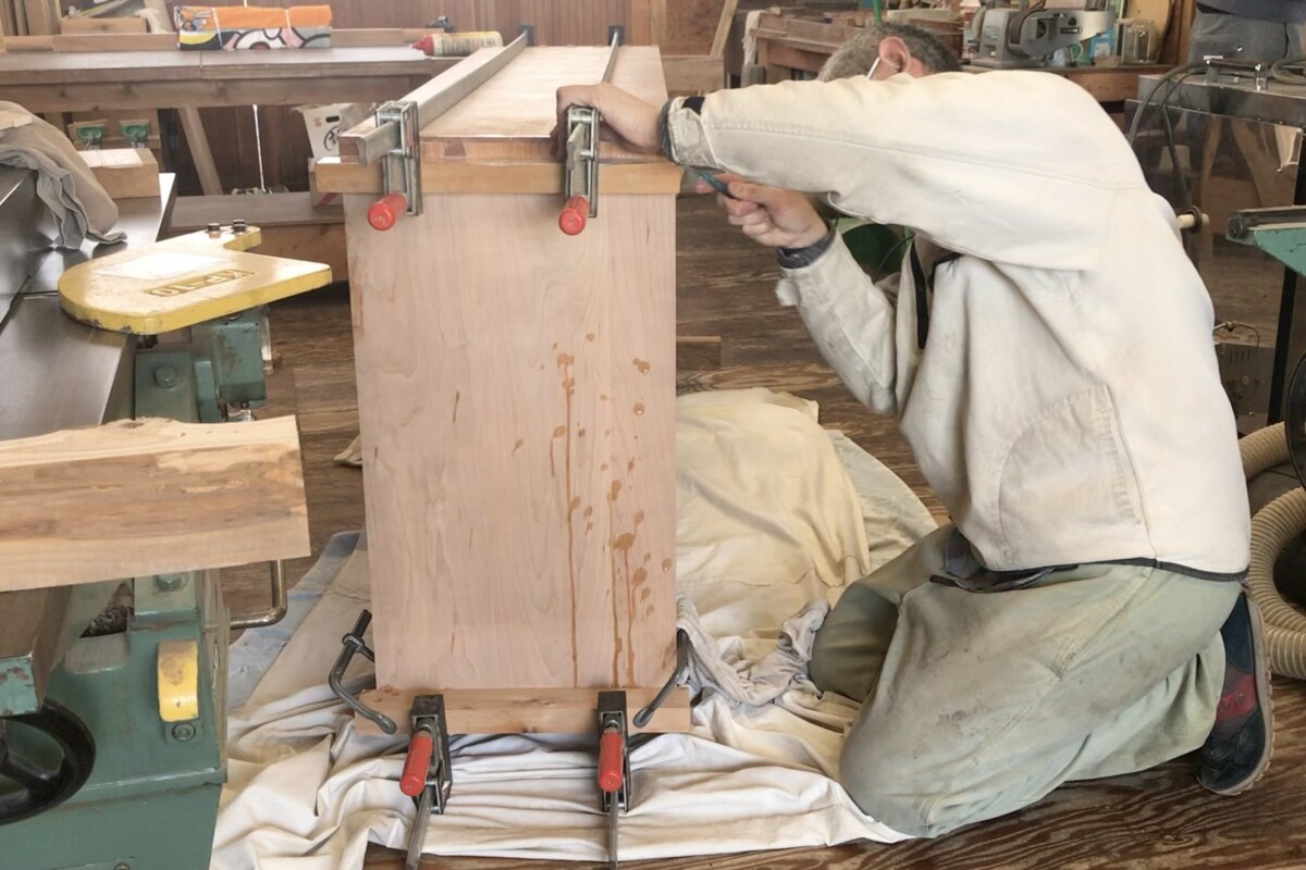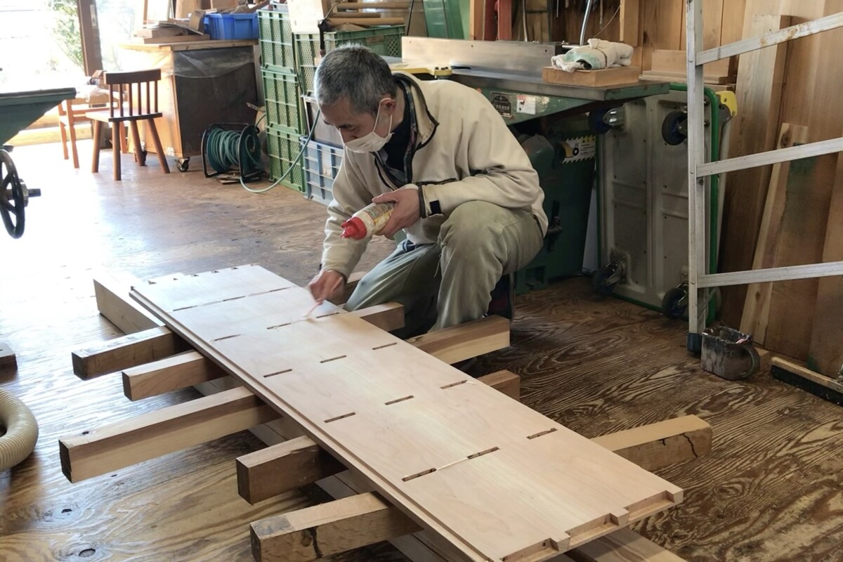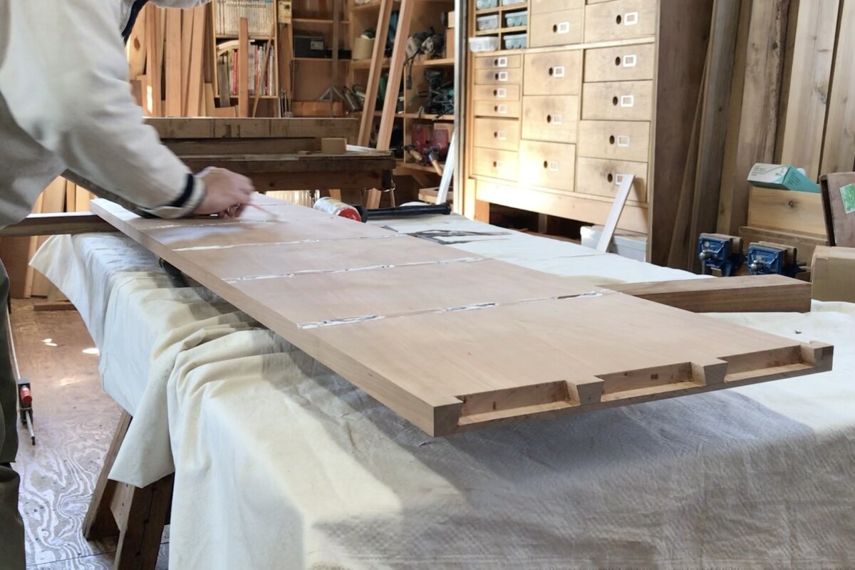 失敗できない作業ですので、仮組みの調整や組む段取りなど事前にシュミレーションしておくと作業がうまく進み、綺麗に仕上がります。後々の手間を考えるとこの部分の調整は時間をかけてしっかり行います。それに加えて必要な道具なども事前に手元に準備しておくと段取り良く作業が進みます。