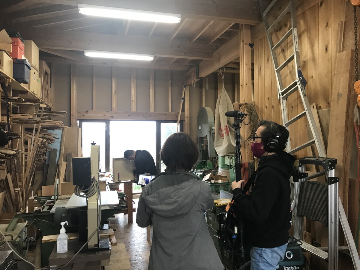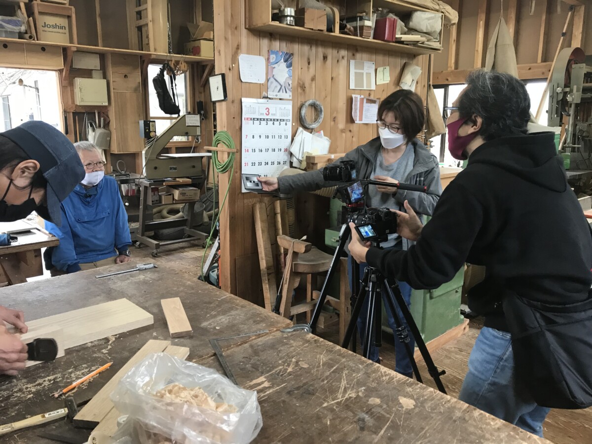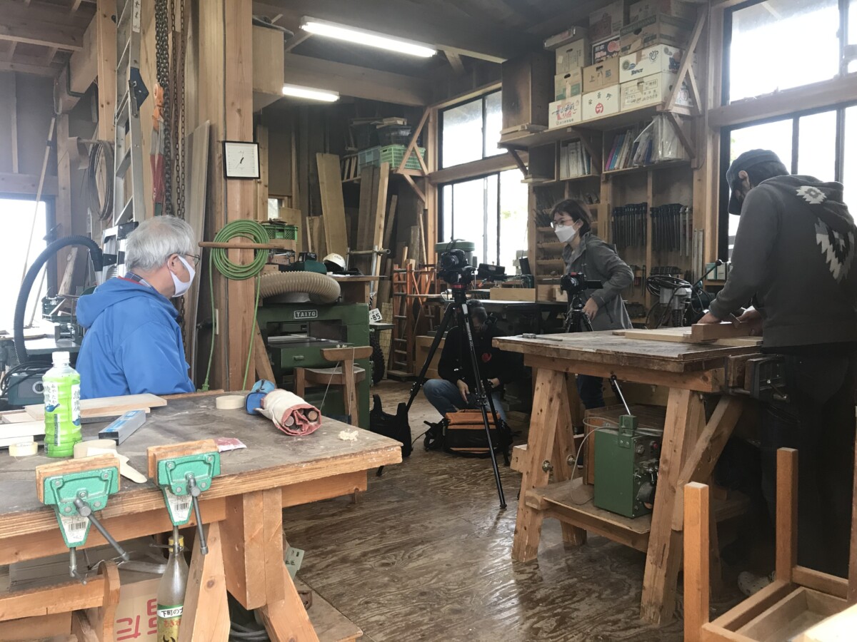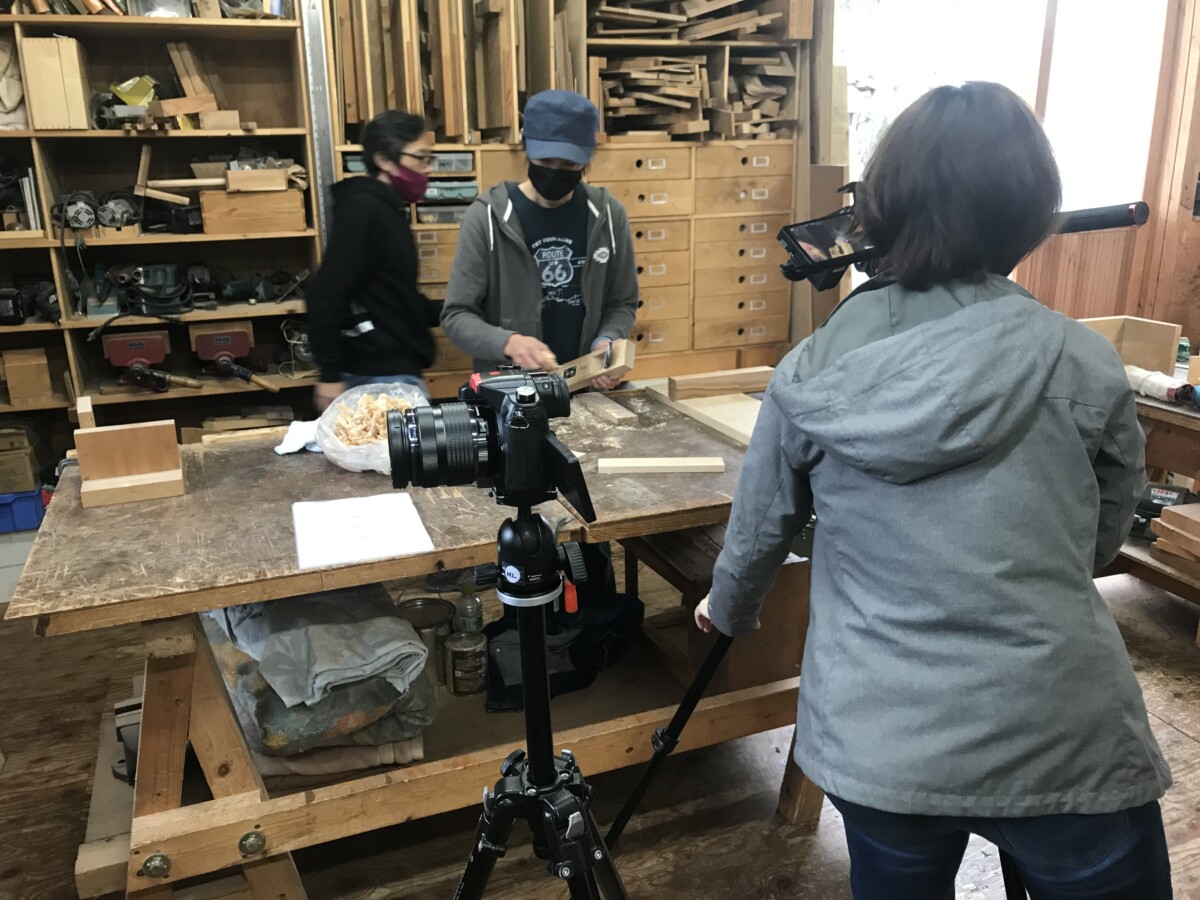打ち合わせの中で木工教室の作業の様子と、教室の生徒さんのインタビューも収録したいということで、本編の撮影よりも一足早く撮影をしていただきました。