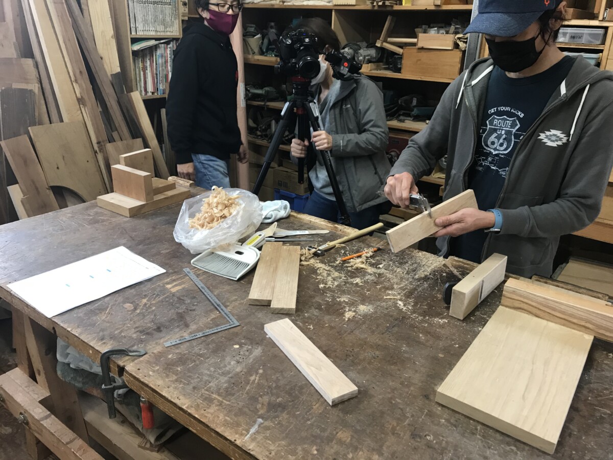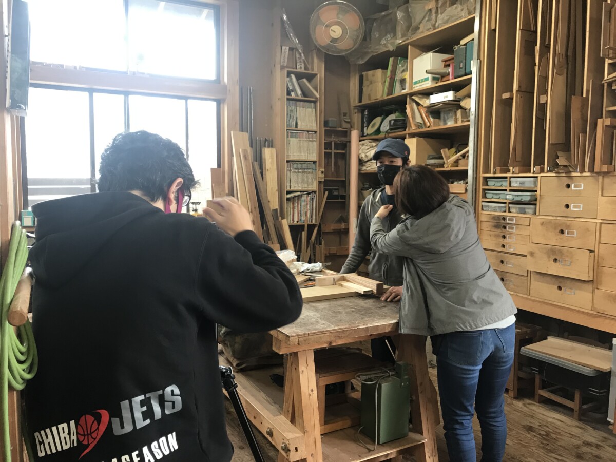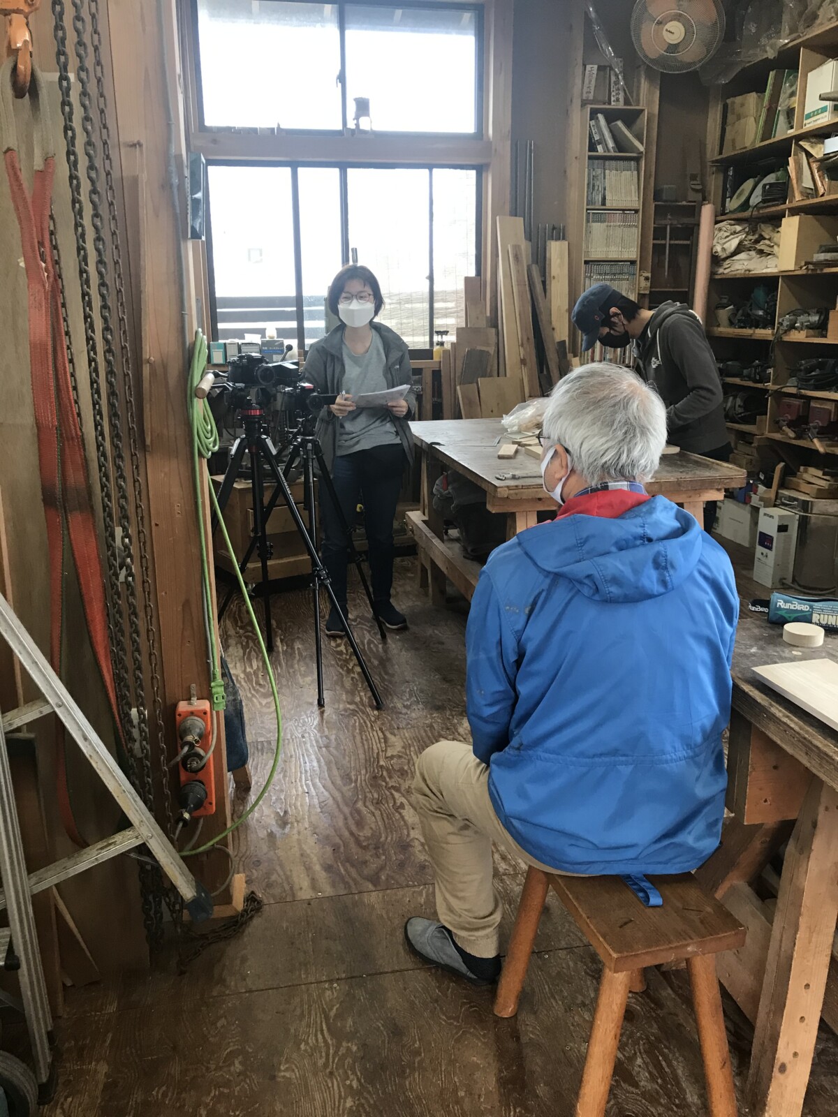 打ち合わせの中で木工教室の作業の様子と、教室の生徒さんのインタビューも収録したいということで、本編の撮影よりも一足早く撮影をしていただきました。