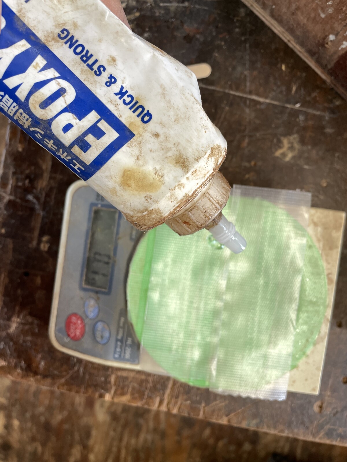 A剤B剤の2液タイプのエポキシボンドを使用します。同量を秤で計ります。
