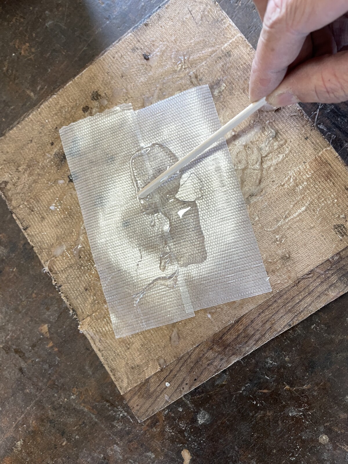 修理の場合、直す部分が弱くなっていることが多いので、全体の補強も兼ねて強力なエポキシ系のボンドを使うようにしています。それとこの椅子の場合、脚を1っか所の接合のみで支えていますので、緩みができるとガタが出てしまいます。エポキシは化学変化で固まるので隙間を充填してくれます。ボンドがきっちり隙間を埋めてくれるので、ガタが出るのを抑えられます。