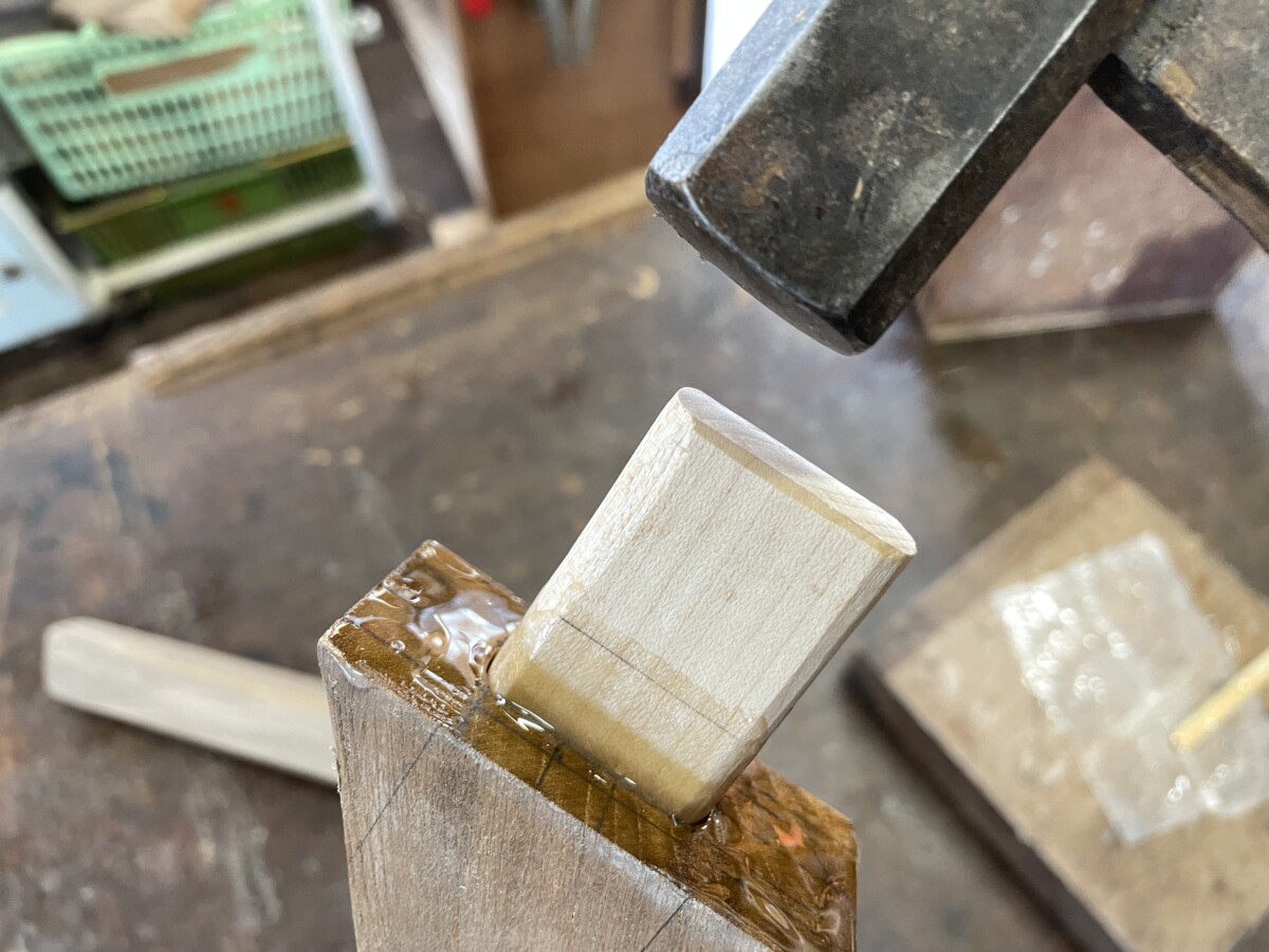 枘はきつすぎず緩すぎず、ちょうど手で押し込めるくらいに調整します。