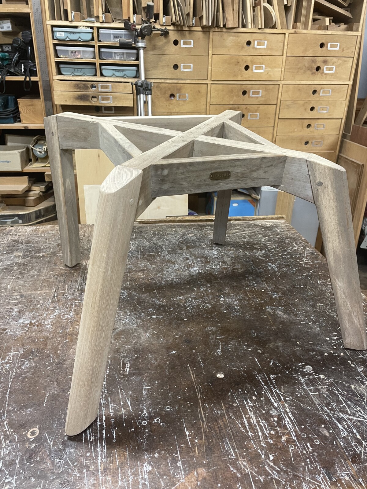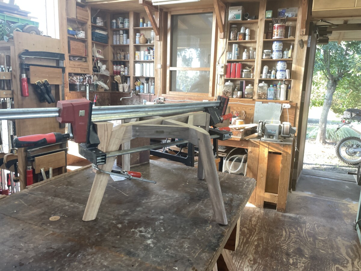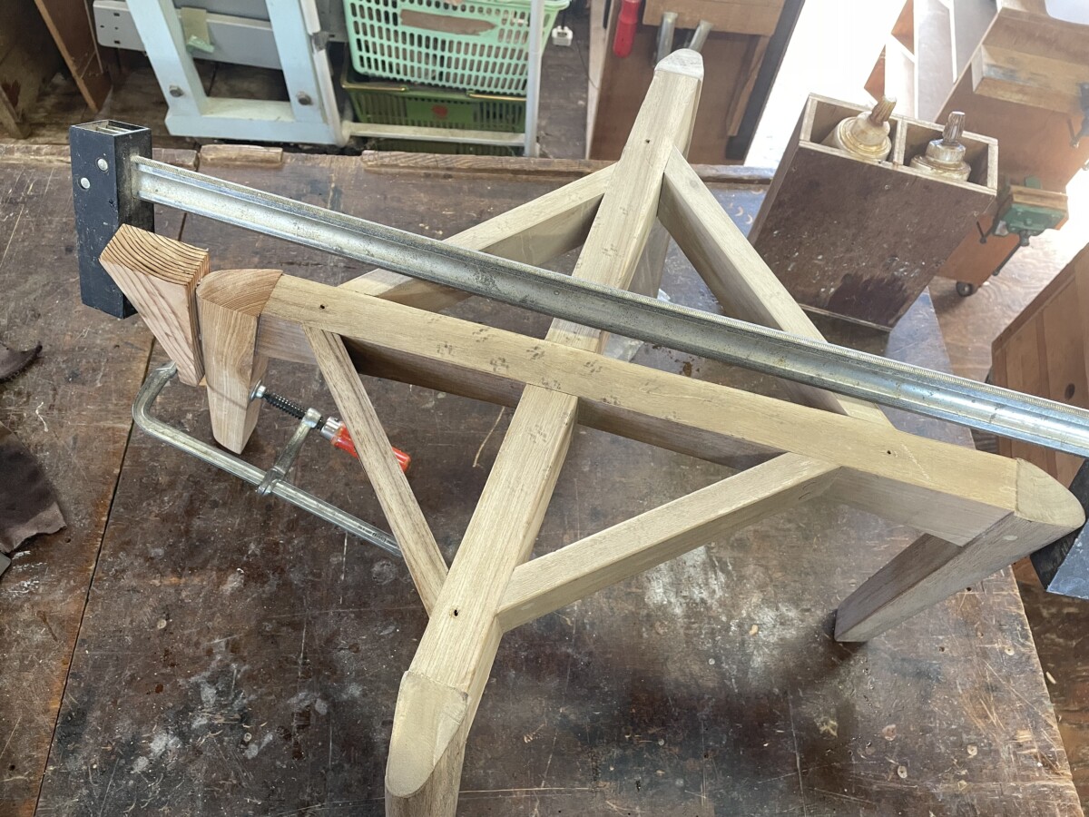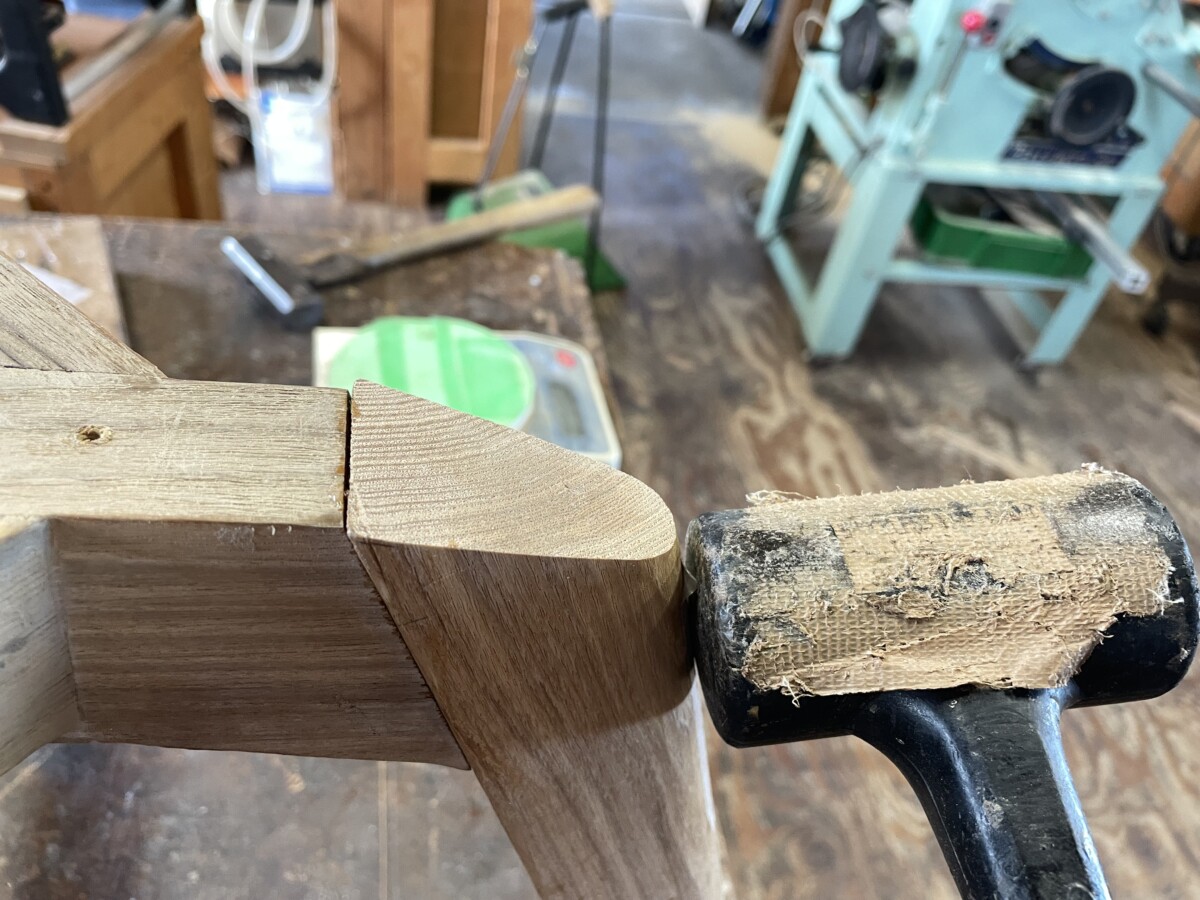 折れた脚や枘(ホゾ)を作り直し、いよいよ組み立ての作業に入ります。