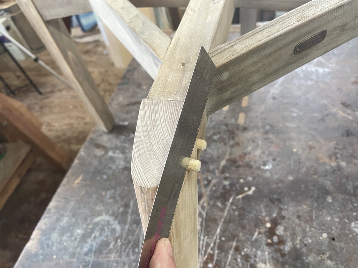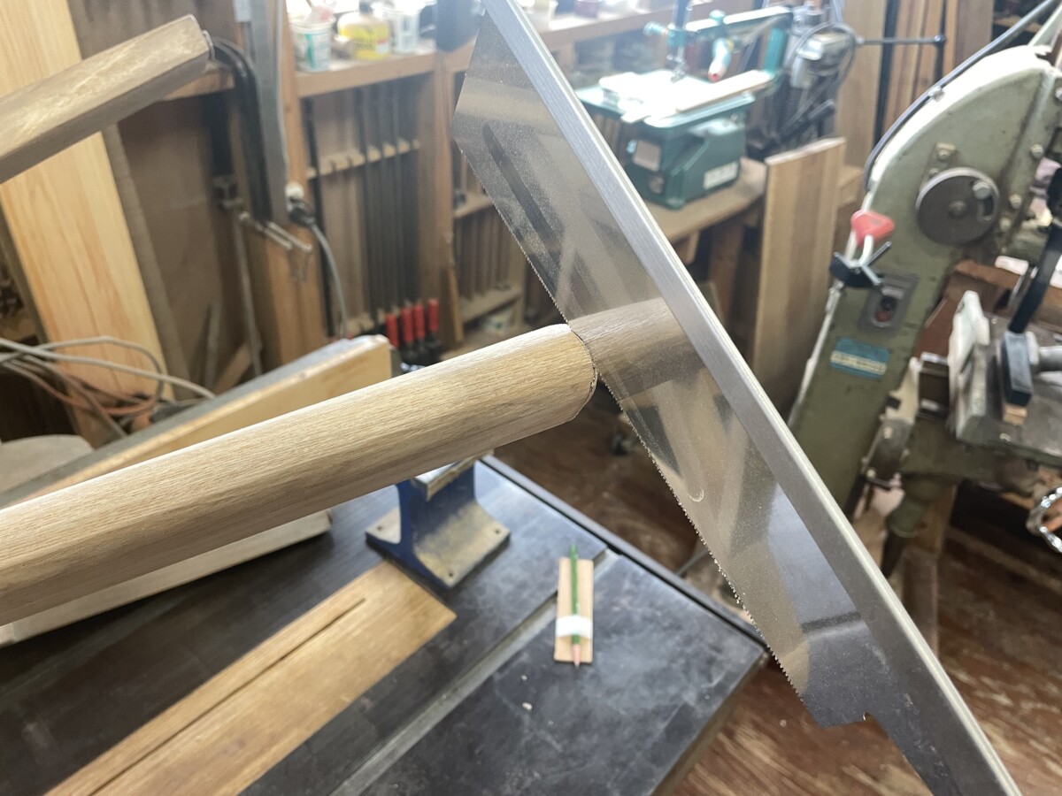 鉛筆の線に合わせてノコギリで正確に切り落とします。