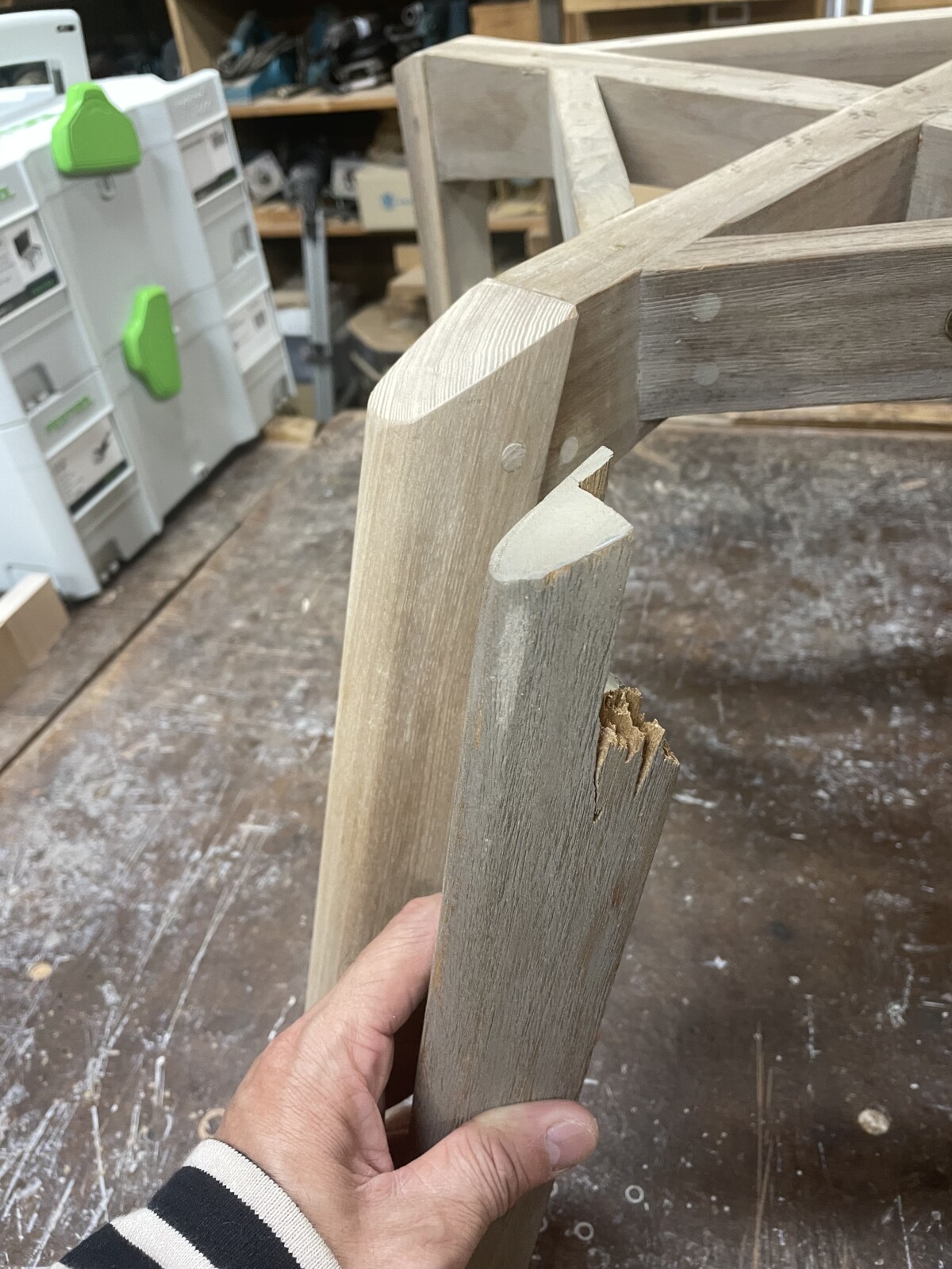 お互いに枘穴を開けて新たに作った枘を入れます。