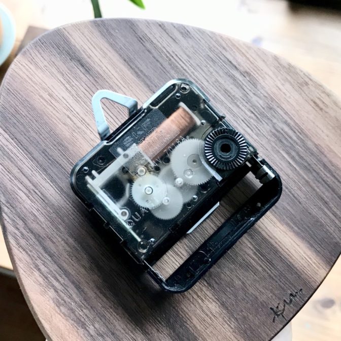 時計を動かすムーブメントはSKP製のスイープムープメントを採用しています。カチカチ音のしないムーブメントです。スーと音無く駆動しますので寝室に設置しても音が気になりませんね。