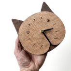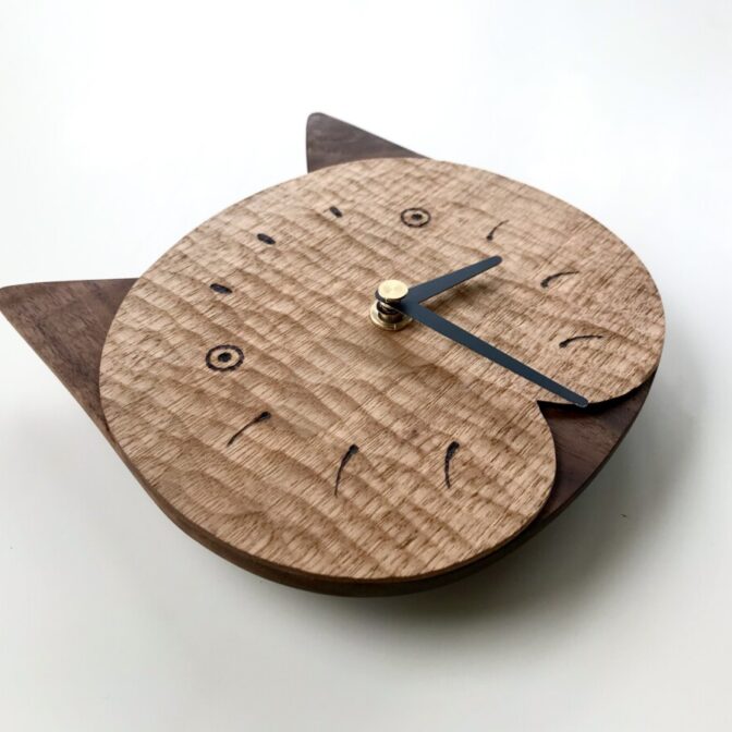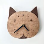 個性的な表情の猫の顔が特徴の壁掛け時計です。